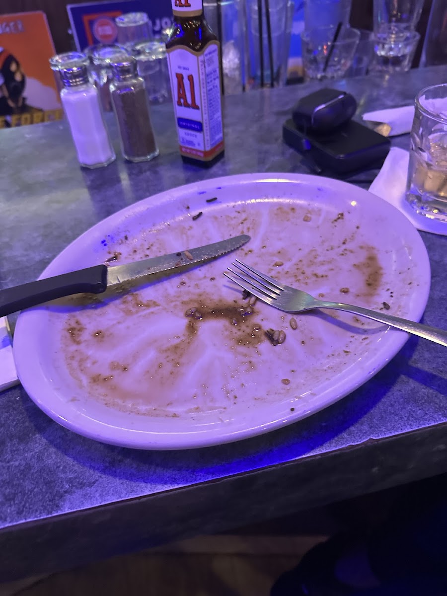 Food was awesome…I got the steak bites with mushrooms, loaded baked potato and a dinner salad and they were so good. Apparently went on Karaoke night and it was way way too loud and the reverb was horrible and the microphone screeching back but the singers were pretty awesome.